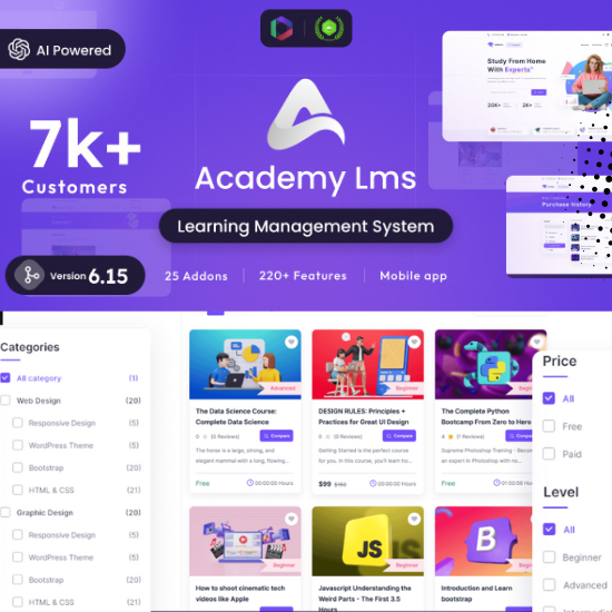 🎓 Academy LMS Codecanyon Code Script – Learning Management System. Online education is growing at an unstoppable pace, and businesses, educators, and entrepreneurs need a platform that can deliver high-quality learning experiences while generating revenue. Academy LMS is a modern, feature-rich Learning Management System (LMS) script designed to empower instructors, training organizations, and businesses to create their own online learning marketplace.