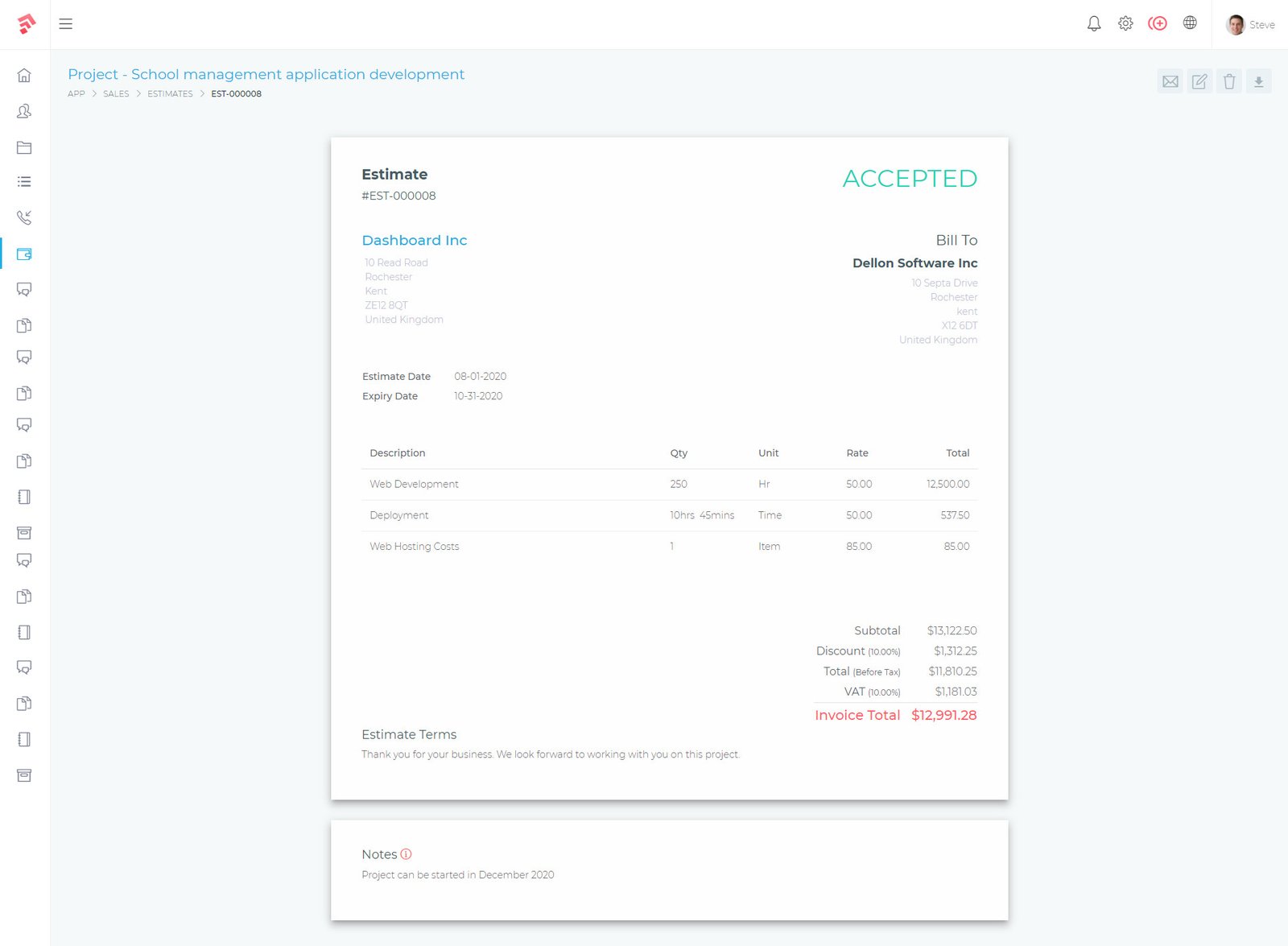 💼 Invoicing & Estimates – Create professional invoices, send estimates, and track payments seamlessly.