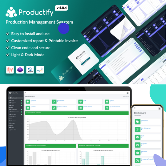🏭 Productify – Production Management System Codecanyon Code Script. Managing production processes efficiently is critical for any manufacturing business, and Productify is here to simplify every step. Built on Laravel, this lightweight, secure, and fast production management system is designed to streamline operations for factories, food production units, garment industries, medicine manufacturers, and more. With Productify, businesses gain a centralized platform to monitor production, track inventory, and optimize workflows, ensuring higher efficiency and reduced operational errors.