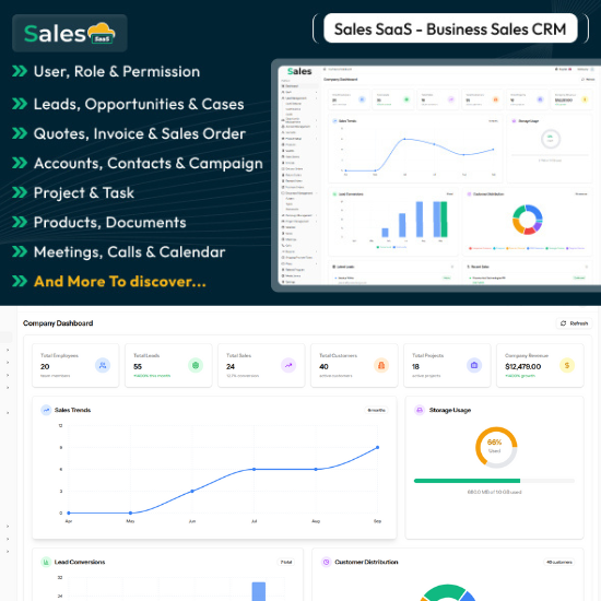 - ✅ SaaS-Ready Architecture – Launch your own sales CRM SaaS platform with subscription plans and recurring income.